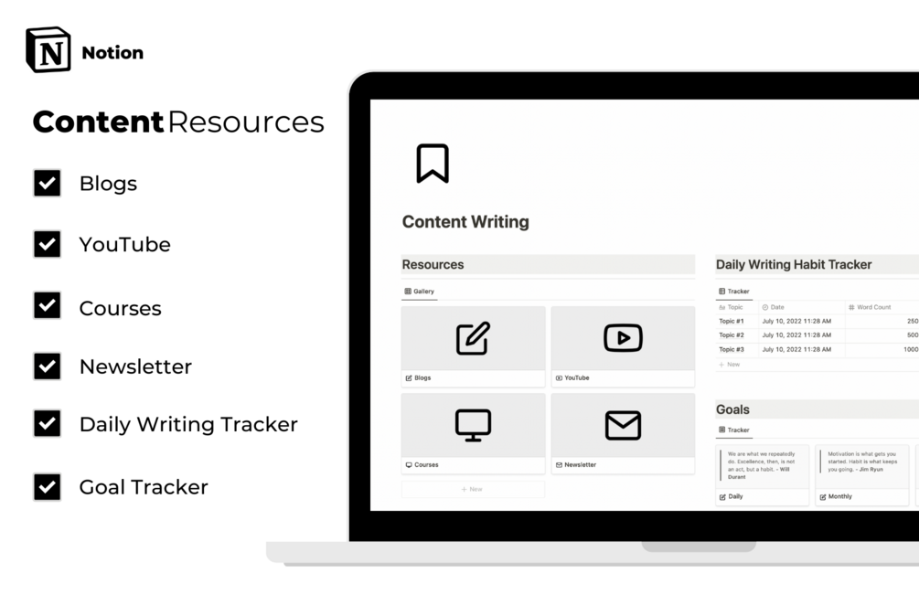 Grab your FREE Notion Content Writing Resource Template and dominate the Writing game by leaving behind 99% of your Competition.