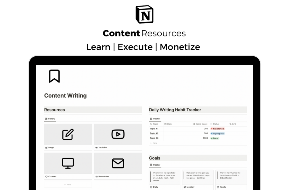 A2> Of course! Once you "Duplicate" the Course Tracker, feel free to customise it the way you want. Add your own Resources and fill up the Goal and Daily Writing Habit Tracker.
